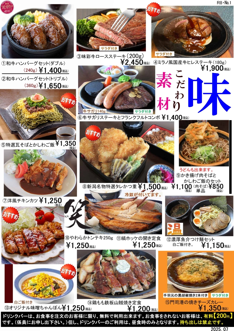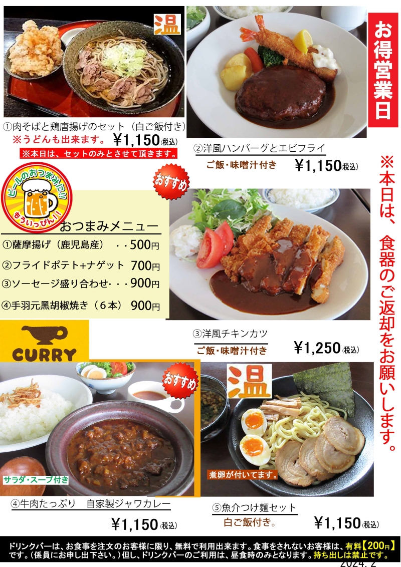 ※ドリンクバーはお食事される方は無料です。(昼食時のみ)