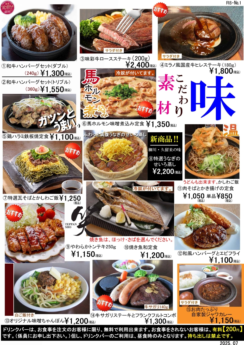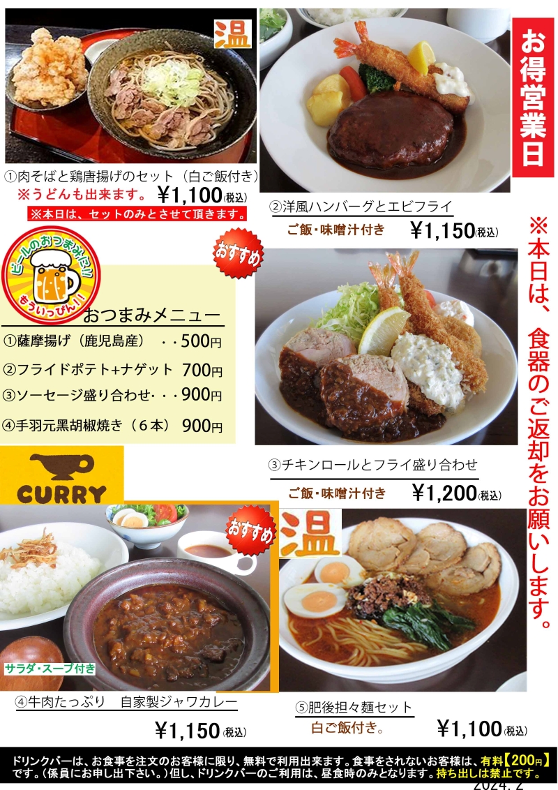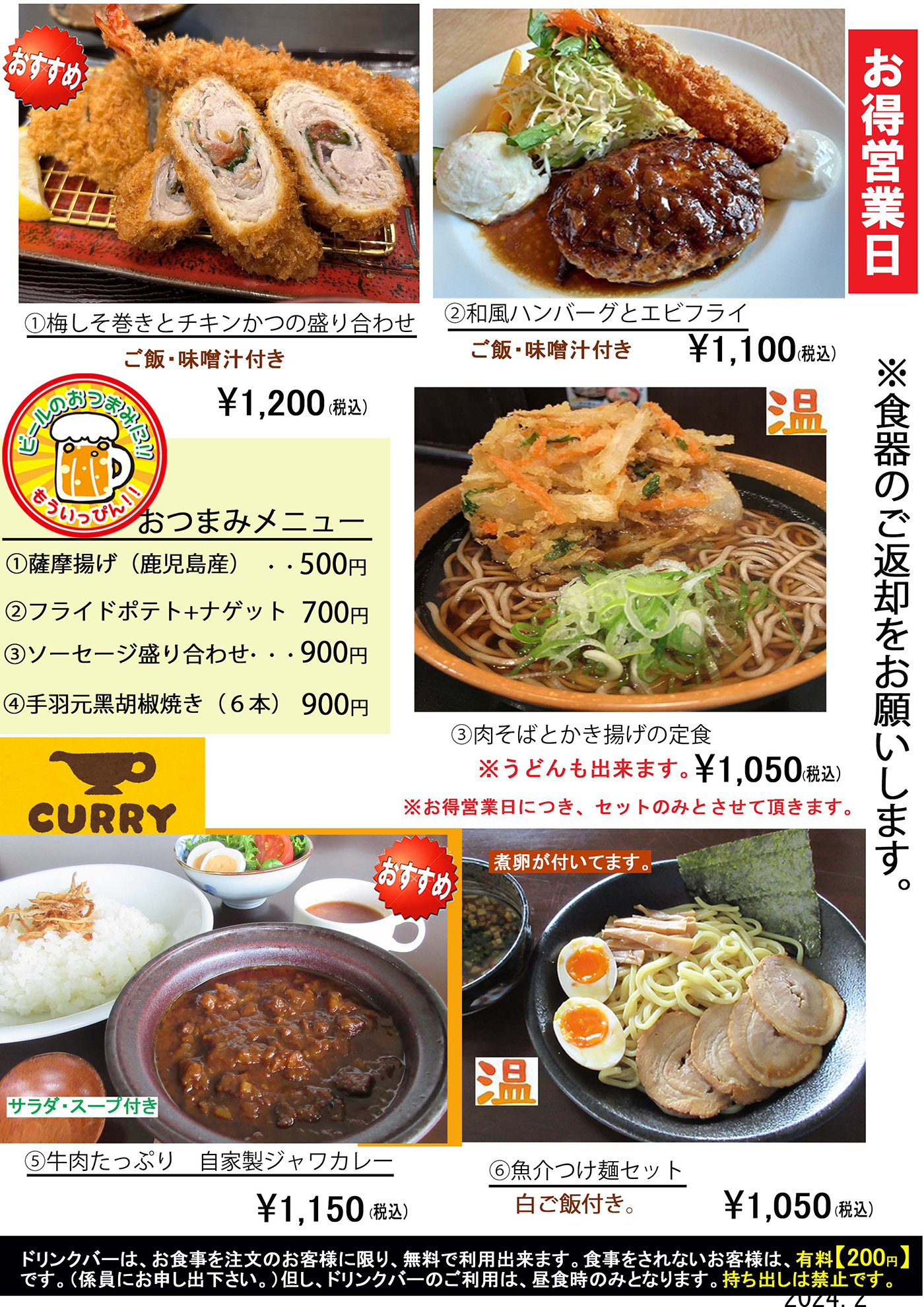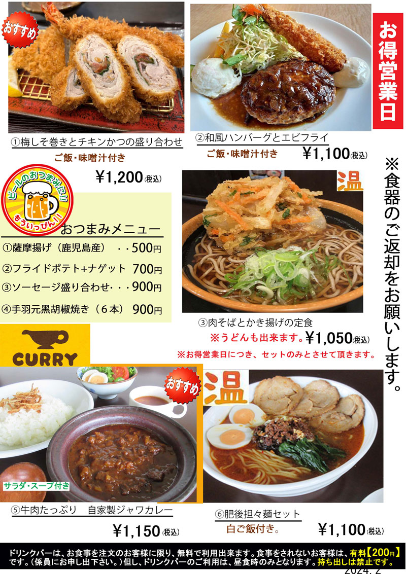 ※ドリンクバーはお食事される方は無料です。(昼食時のみ)